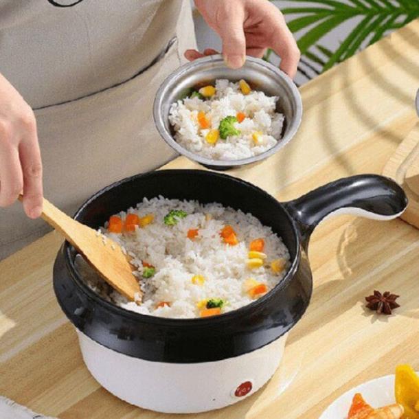 NỒI ĐIỆN CHẢO TAY CẦM MINI ĐA NĂNG:sản phẩm nồi điện mini 2 tầng thích hợp Nấu lẩu, nấu canh, xào rau, nấu mỳ... kiểu dáng gọn nhẹ, dễ dàng đặt trên bàn ăn, không chiếm nhiều diện tích.