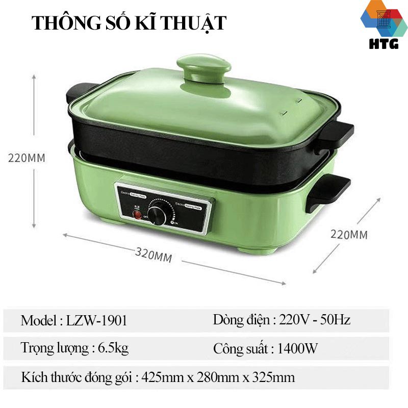 Nồi điện đa năng 6 trong 1 Suncojia LZW-1901, ăn lẩu, nướng, chiên, xào, rán, hấp, làm bánh hàng chính hãng