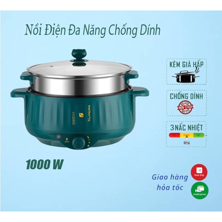 Nồi điện đa năng DG720, Bếp điện 28cm 1000W chiên xào, lẩu hấp phủ lớp chống dính công nghệ Nhật Bản, Tiết kiệm điện
