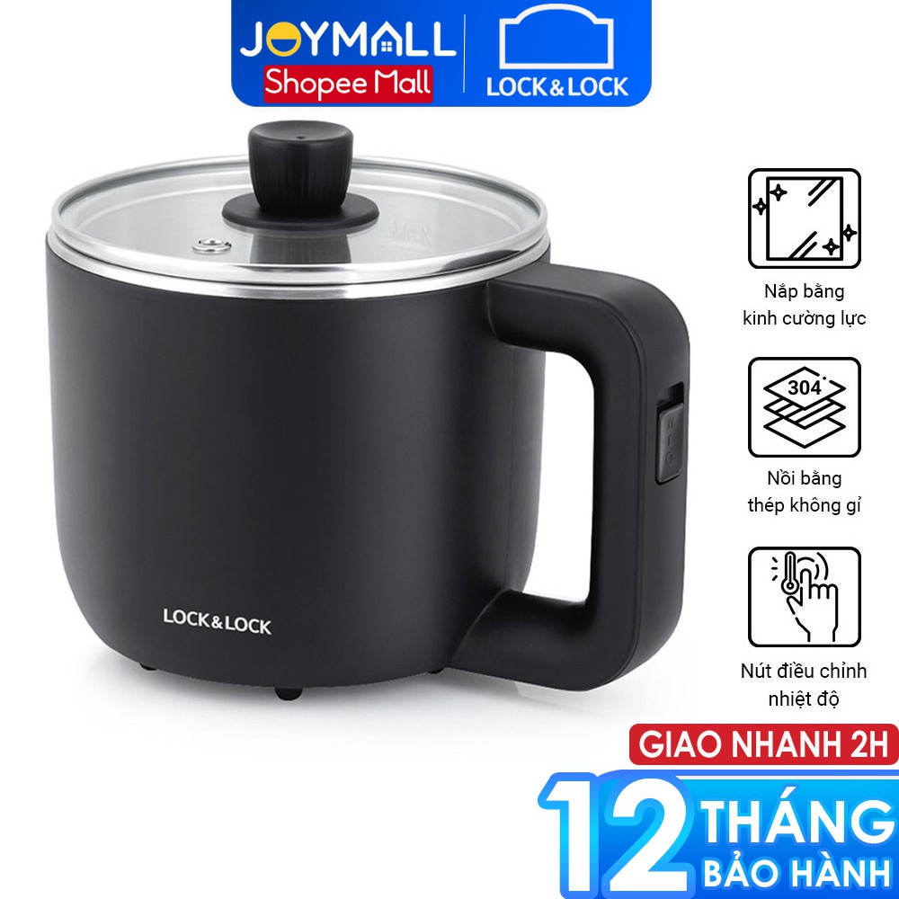 Nồi điện đa năng Lock&Lock EJP116BLK 0.8L - Hàng chính hãng, nấu mì nấu lẩu nấu nước, tặng kèm khay hấp trứng - JoyMall