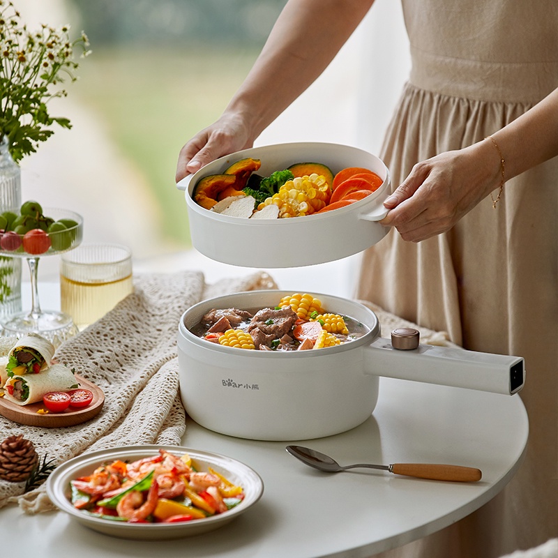 Nồi đa năng Bear thích hợp dùng để chế biến hầu hết các món ăn cơ bản như nấu canh, chiên, xào, om, hầ