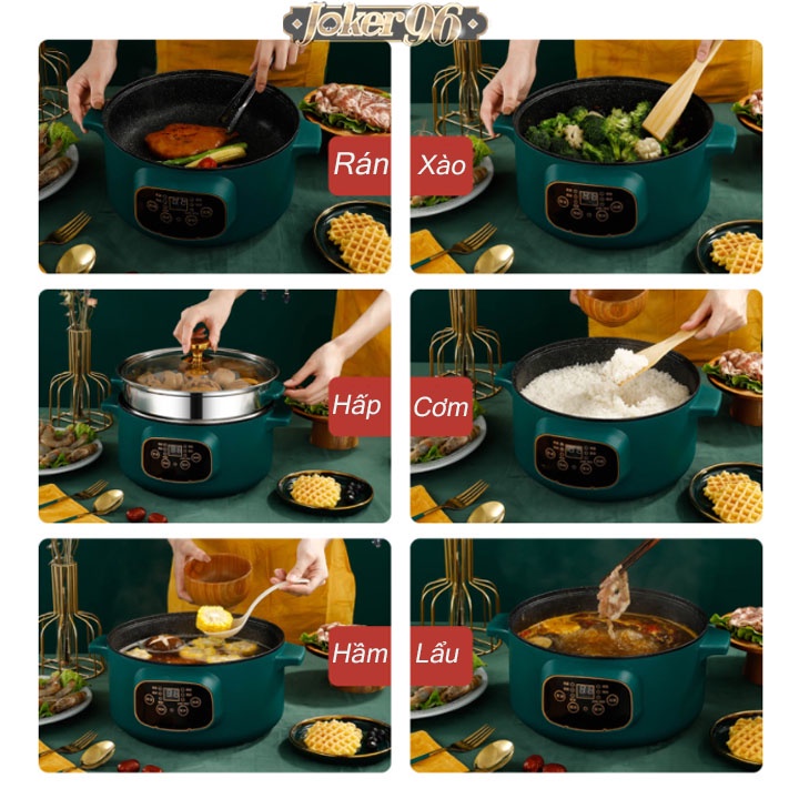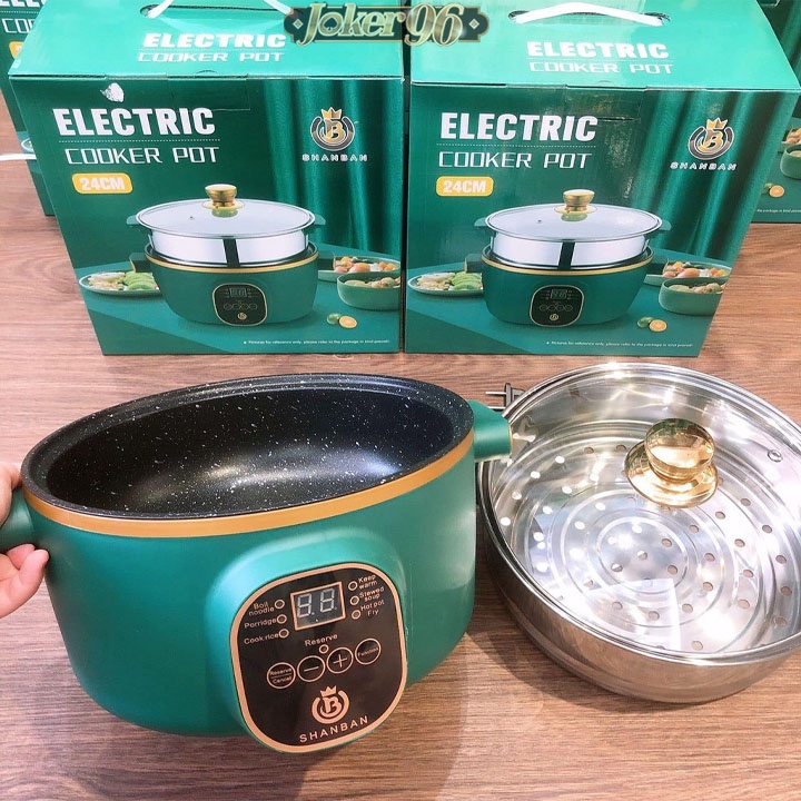 Nồi Điện Shiban Đa Năng Chống Dính 24cm Kèm Giá Hấp Inox, Nồi Cơm Điện, Chiên Xào, Nấu Canh, Hầm Cháo