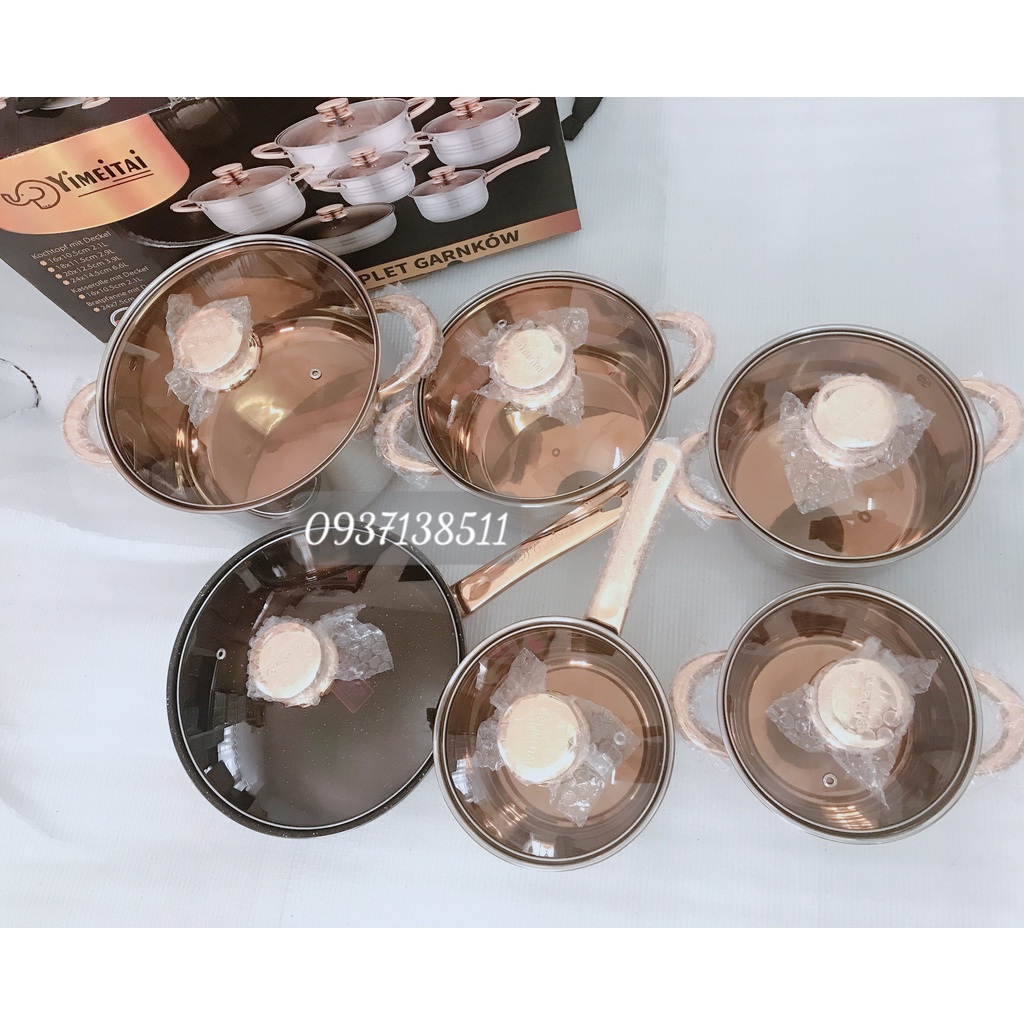 Bộ nồi Đức 5 đáy Yimeitai 6 món lắp hợp kim vàng - dùng cho mọi loại bếp điện, bếp từ, bếp ga