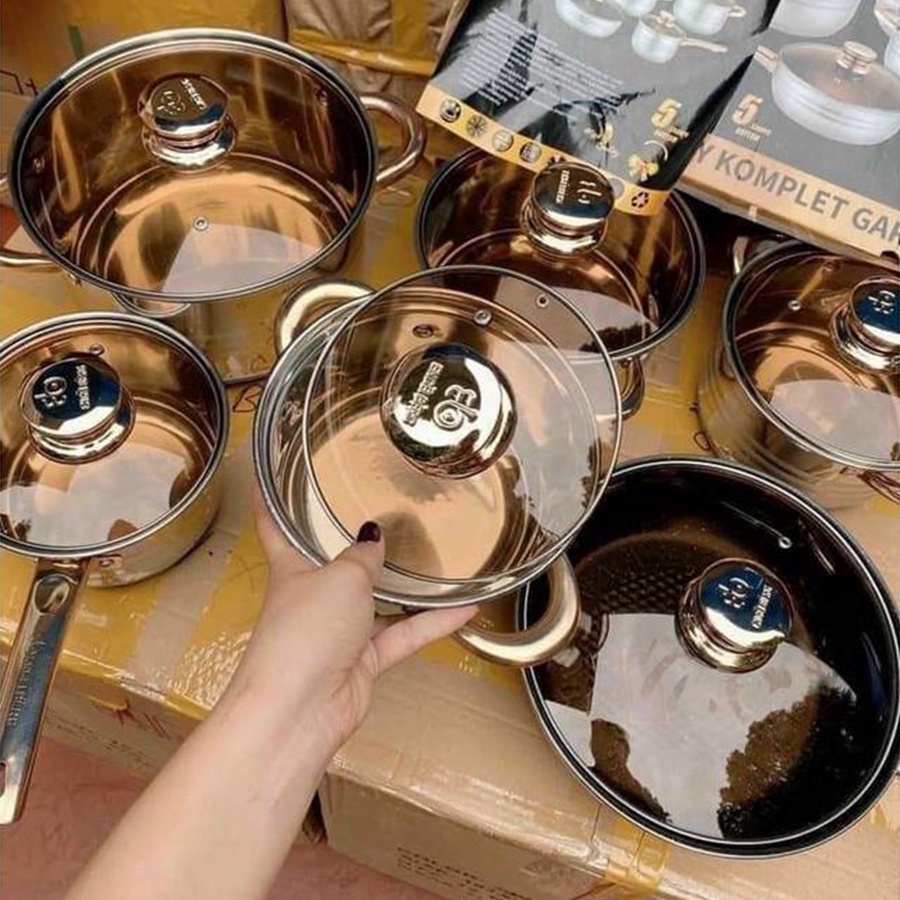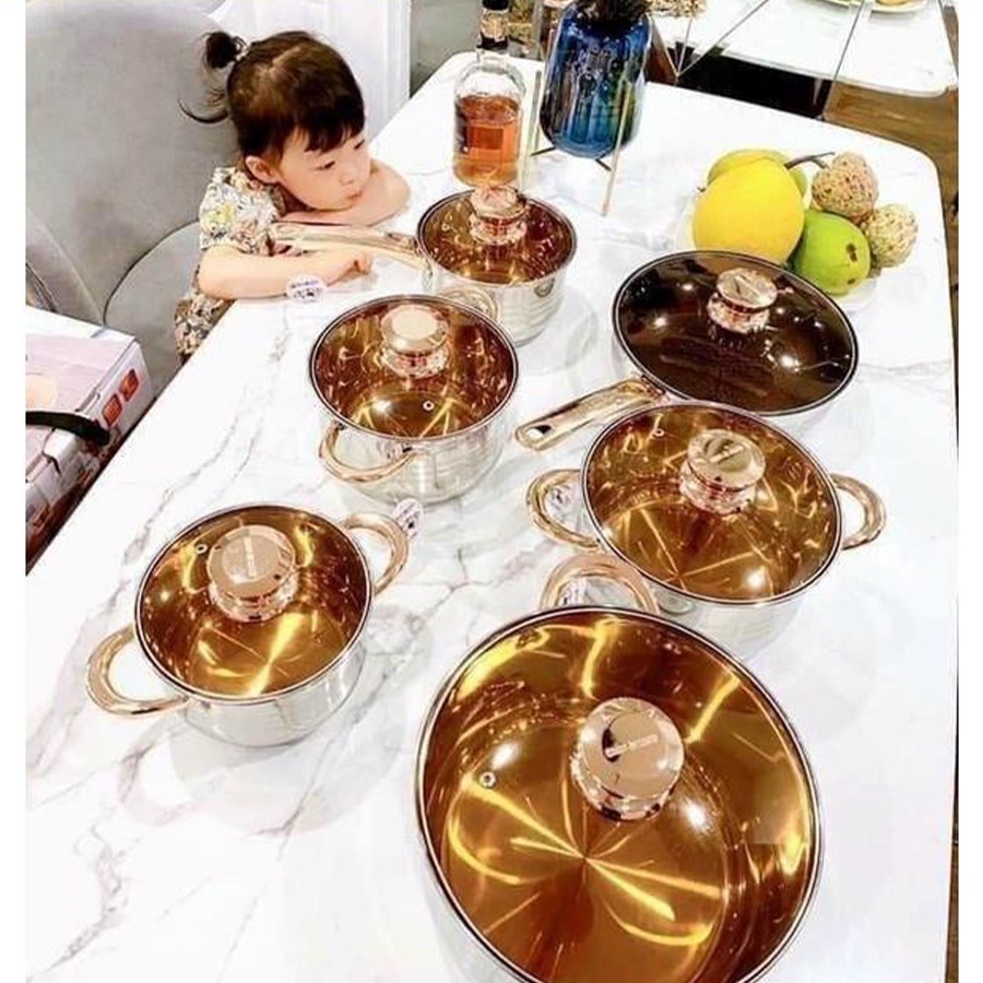 bộ nồi đức 9 đáy 12 chi tiết chất liệu thép không gỉ an toàn cho sức khỏe và bền đẹp sang trọng lịch sựGiá YLT