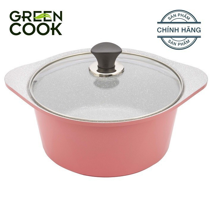 Giới thiệu Nồi đúc ceramic vân đá đáy từ chống dính 18cm Green Cook GCS02 size 18-20-24 cm công nghệ Hàn Quốc