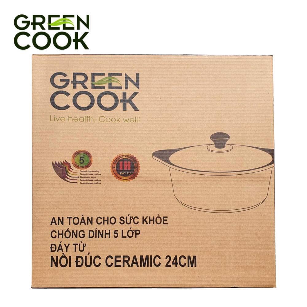 - Nồi đúc ceramic vân đá đáy từ Green Cook được sản xuất theo công nghệ cao Hàn Quốc, phủ đá thiên nhiên siêu bền và thân thiện với môi trường. Phủ 5 lớp chống dính CERAMIC siêu bền, an toàn cho sức khỏe, dày 3mm, chịu lực tốt, chống biến dạng, chống dính tốt, dễ lau chùi.