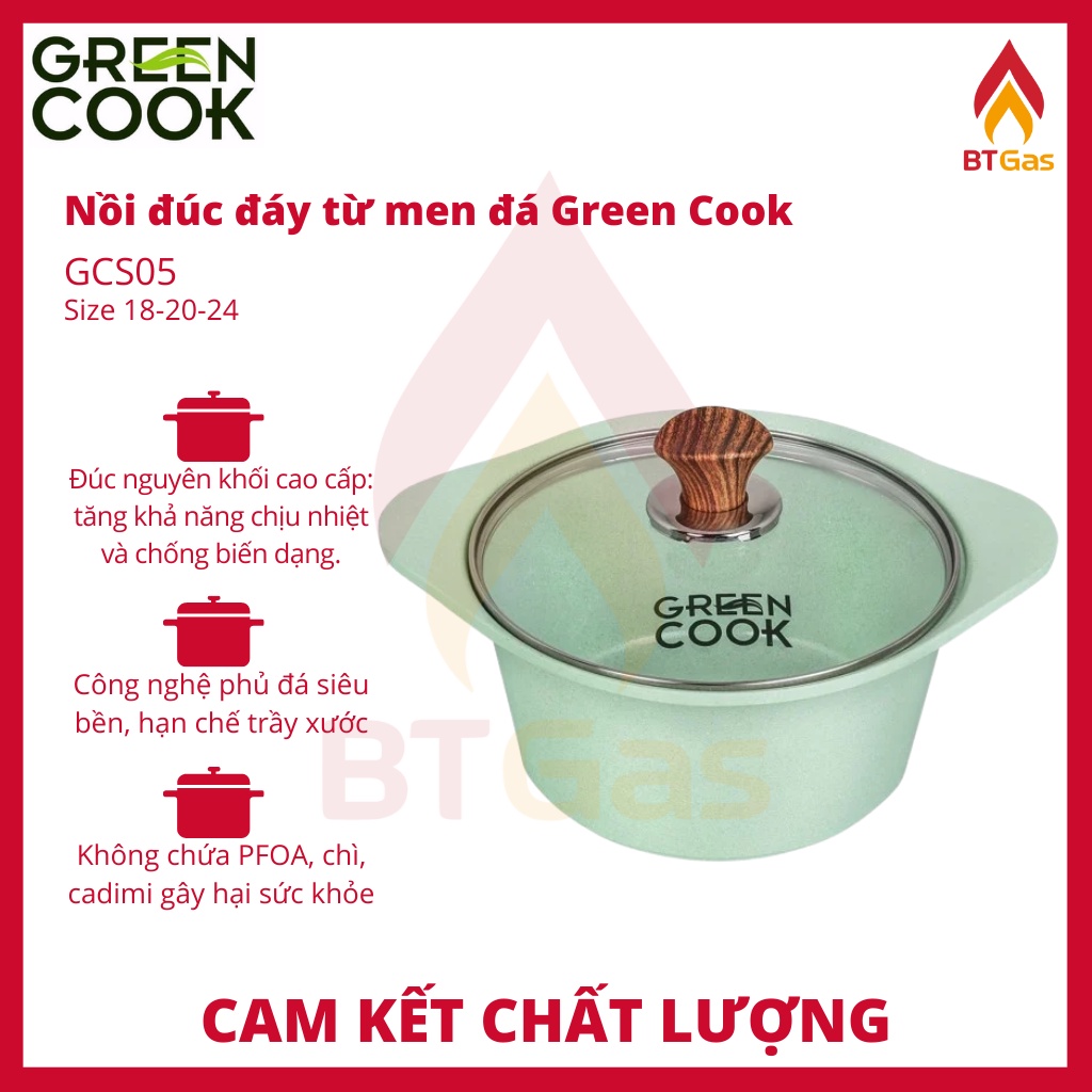 Nhà cửa & Đời sống > Dụng cụ nhà bếp > Nồi || Nồi đúc đáy từ Green Cook, nồi chống dính đáy từ men đá xanh ngọc Green CookCòn hàng