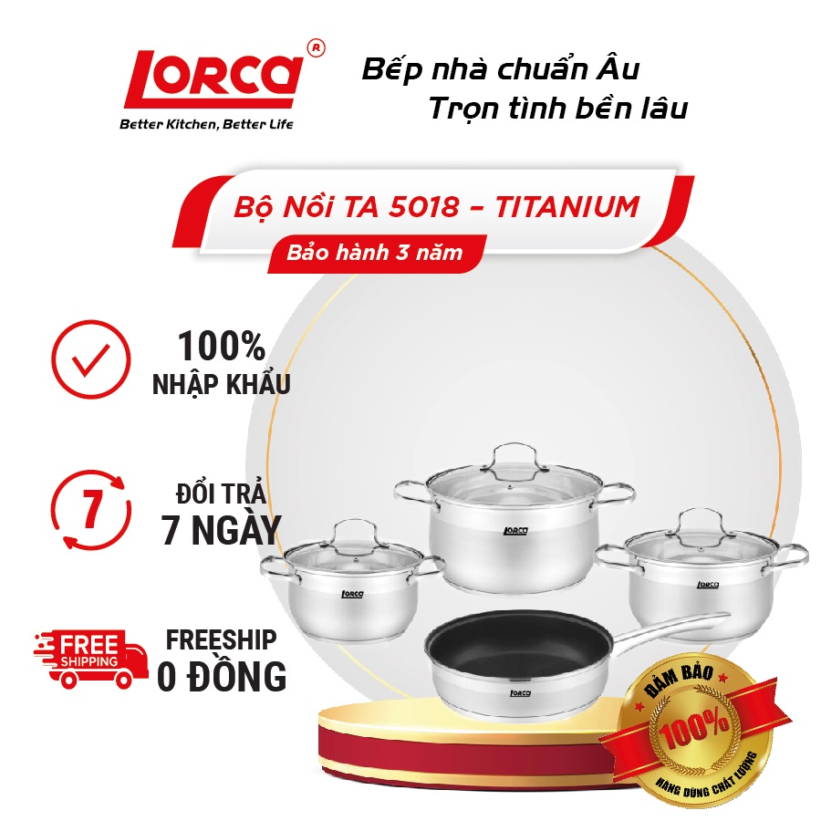 Nhà cửa & Đời sống > Dụng cụ nhà bếp > Nồi || Bộ nồi đun cao cấp Lorca Titanium TA 5018- Bảo hành 3 nămCòn hàng