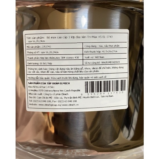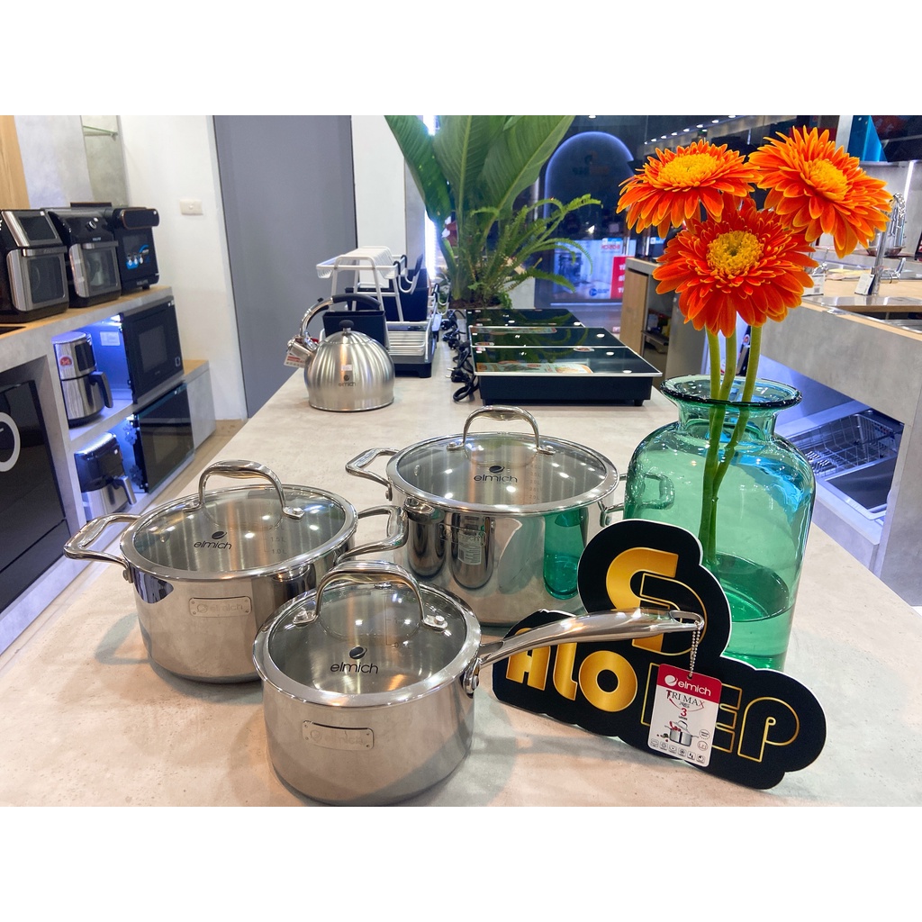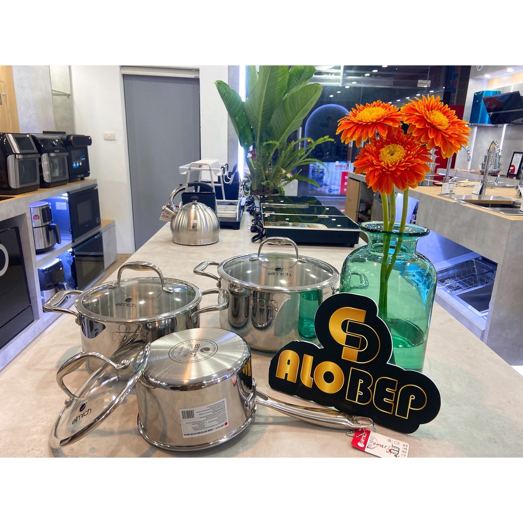 Nhà cửa & Đời sống > Dụng cụ nhà bếp > Nồi || Bộ nồi elmich Inox cao cấp 3 lớp đáy liền Trimax XS EL-3743 size 16, 20, 24cmCòn hàng