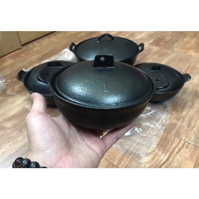 Nồi gang chống dính kho quẹt, nấu cơm niêu, nấu lẩu cháo Đk 12-25cm