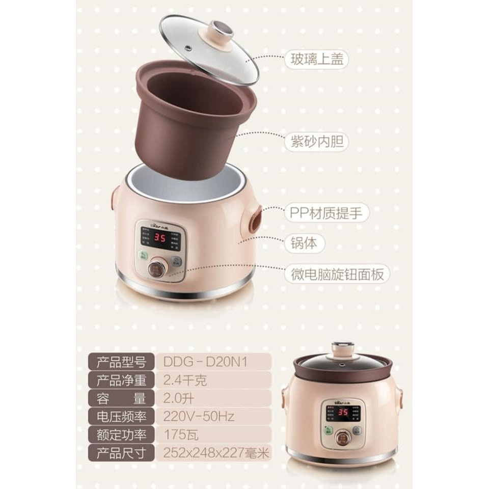 🍁Nồi hầm đa năng Bear lõi tử sa tự nhiên dung tích 2L mã D20N1🍁(phù hợp dùng cho gia đình 2-3 người)