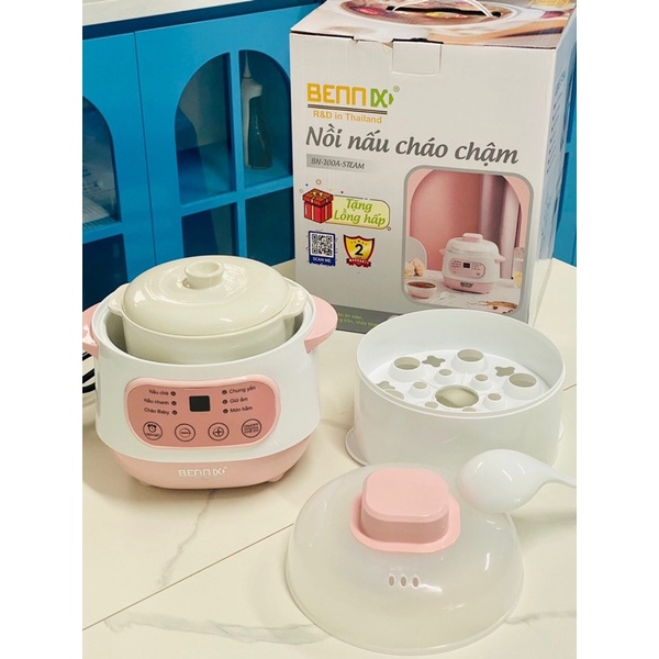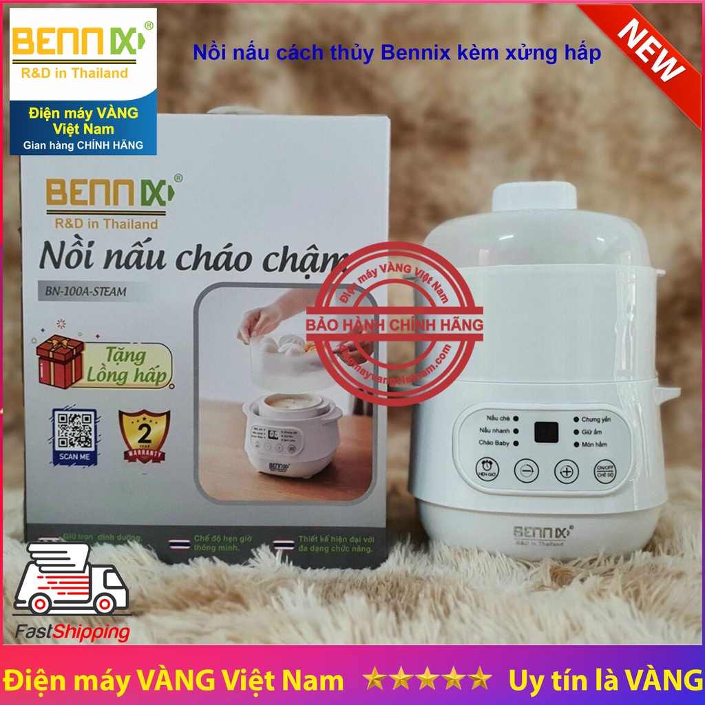 Thiết Bị Điện Gia Dụng > Đồ gia dụng nhà bếp > Nồi nấu chậm & Dụng cụ nấu chân không || Nồi hầm cháo chậm, nồi chưng yến cách thủy Bennix Thailand BN-100A-Steam có xửng hấp rau củCòn hàng