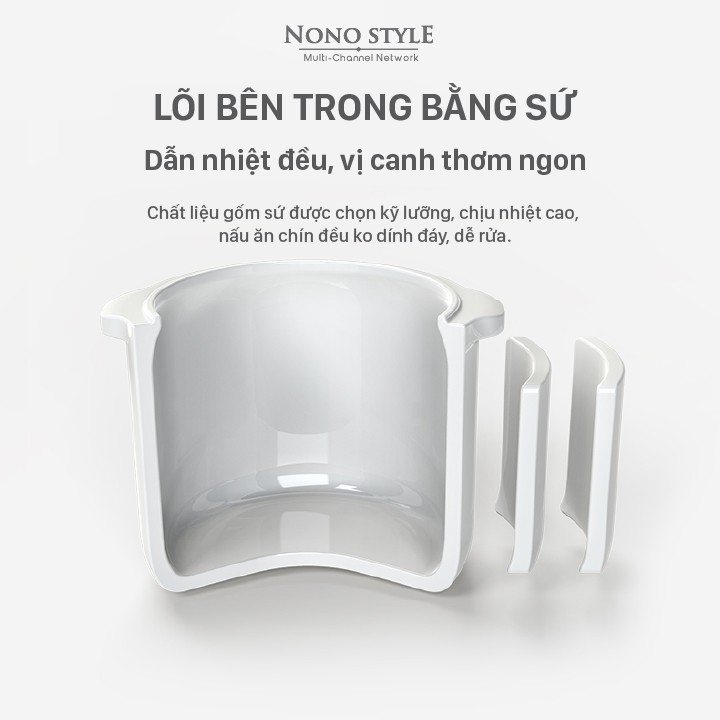 - Lõi nồi được làm từ gốm sứ, chất liệu đã thông qua kiểm duyệt kĩ càng, chịu được nhiệt độ cao, dẫn nhiệt đều, món ăn được chín đề và không dính đáy, dễ dàng vệ sinh. Đế thiết kế tản nhiệt, chống rơi, kéo dài thời gian sử dụng