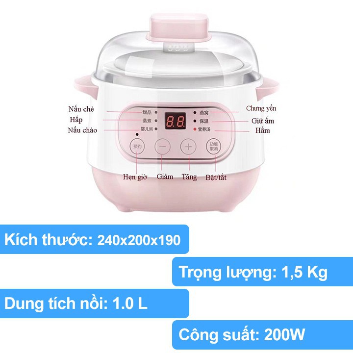 » Có 6 tính năng : hấp, hầm canh, nấu cháo, chưng yến, súp chè, giữ ấm