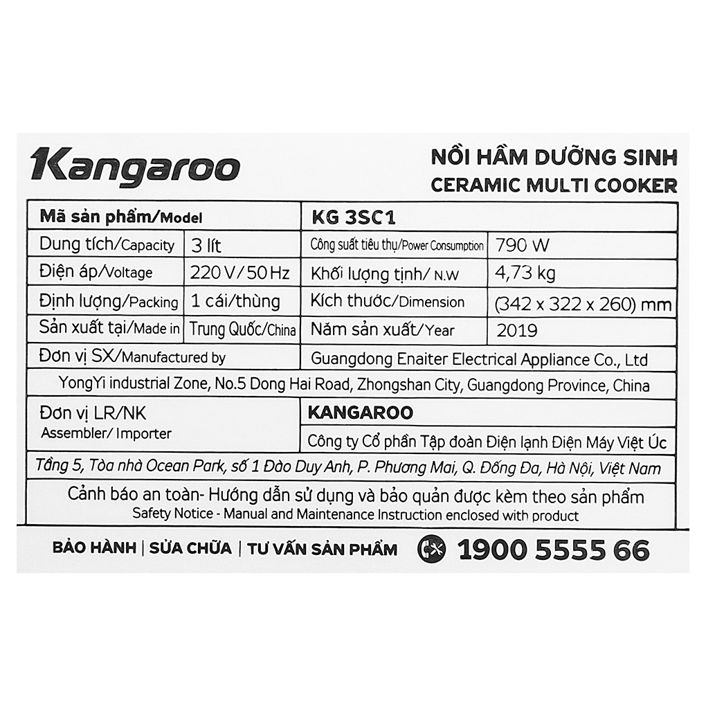 Giới thiệu [Mã ELHADEV giảm 4% đơn 300K] Nồi hầm dưỡng sinh Kangaroo KG3SC1 3 lít