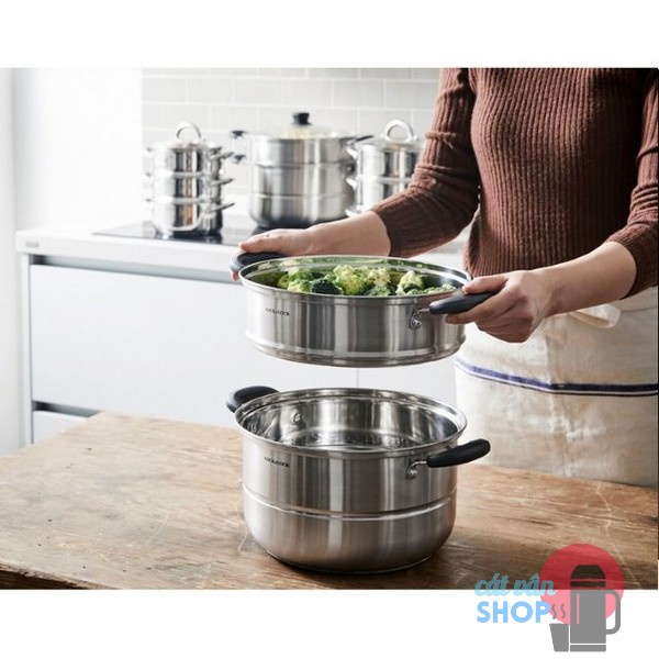 Bộ gồm có nồi và xửng thuận tiện cho người nội trợ sử dụng để nấu canh, nấu súp, luộc, hấp…- Kích thước :