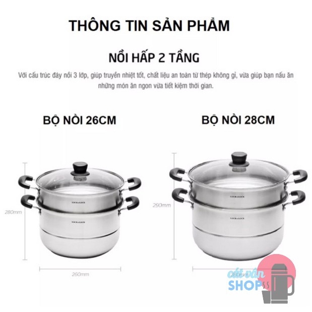 Nhà cửa & Đời sống > Dụng cụ nhà bếp > Nồi || Bộ nồi hấp 2 tầng Lock&Lock Steamer Pot size 26cm/28cmCòn hàng