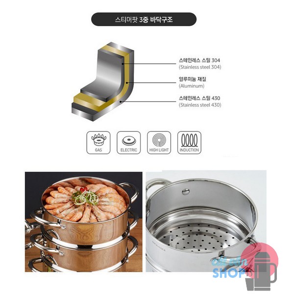 Bộ nồi xửng dùng được trên bếp từ, bếp hồng ngoại và cả bếp gas.