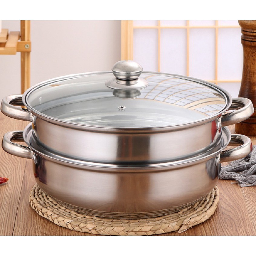 Nhà cửa & Đời sống > Dụng cụ nhà bếp > Nồi || Nồi Hấp 2 tầng,Xửng hấp Cách Thủy ionx 28cm đa năng cao cấp có nắp kínhCòn hàng