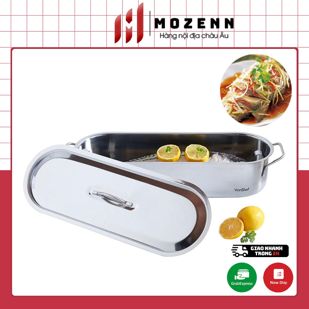 Hấp cá KitchenCraft✅ Nồi Hấp cá Kitchen Craft có nắp đậy được làm bằng thép Cromagran không gỉ cao cấp, siêu bóng sáng đẹp