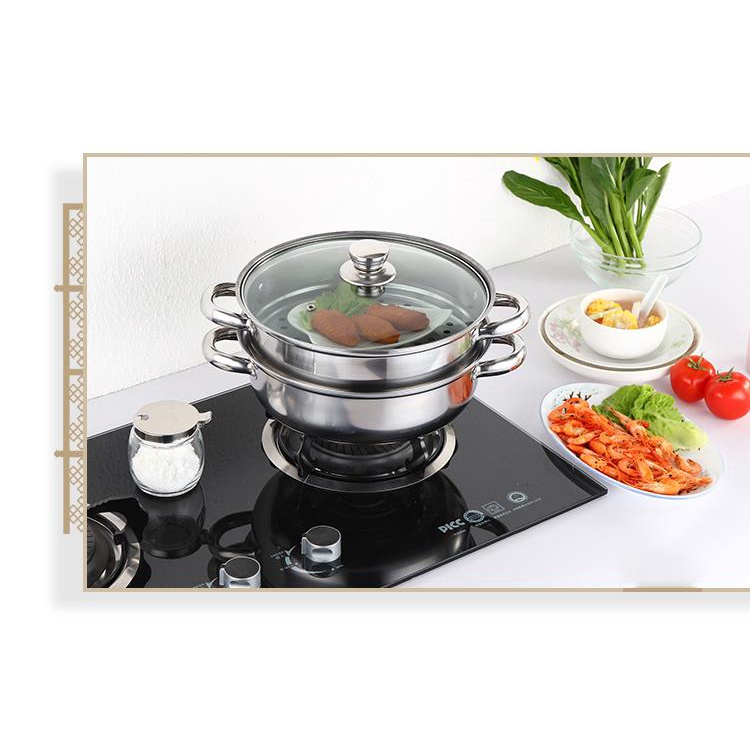 Nồi hấp cách thủy đa năng/ Nồi lẩu kiêm nồi hấp 2 tầng inox , Bộ Nồi Xửng Hấp Inox COOK 28cm Nắp Kính