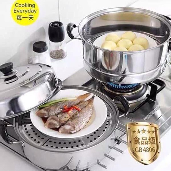 - Chất liệu Nồi Hấp Inox 3 tầng inox không gỉ, bền bỉ, an toàn cho sức khỏe người sử dụng. ------------------------------------------