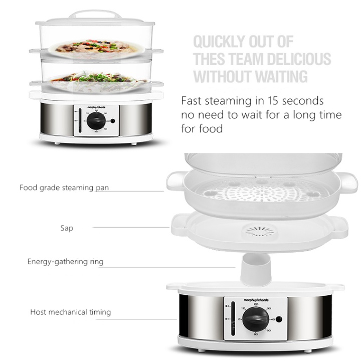 - Nồi hấp thực phẩm 3 tầng Morphy Richards MR1148 có thiết kế thời trang và tiện dụng, được tích hợp nhiều chức năng, cho bạn hấp được các loại thức ăn khác nhau mà không mất nhiều thời gian và công sức nấu nướng.
