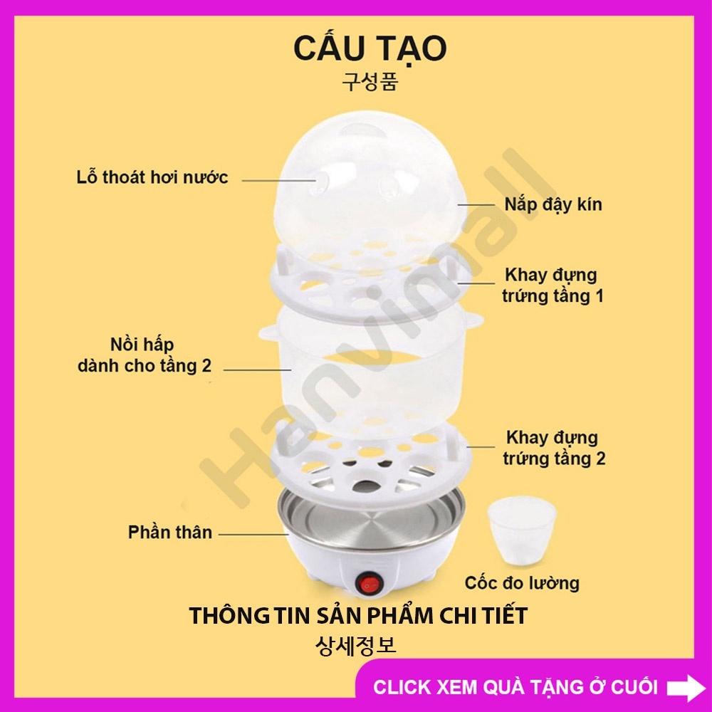 Bộ sản phẩm : 1 nồi hấp trứng 2 tầng + 2 khay đựng + sách HDSD