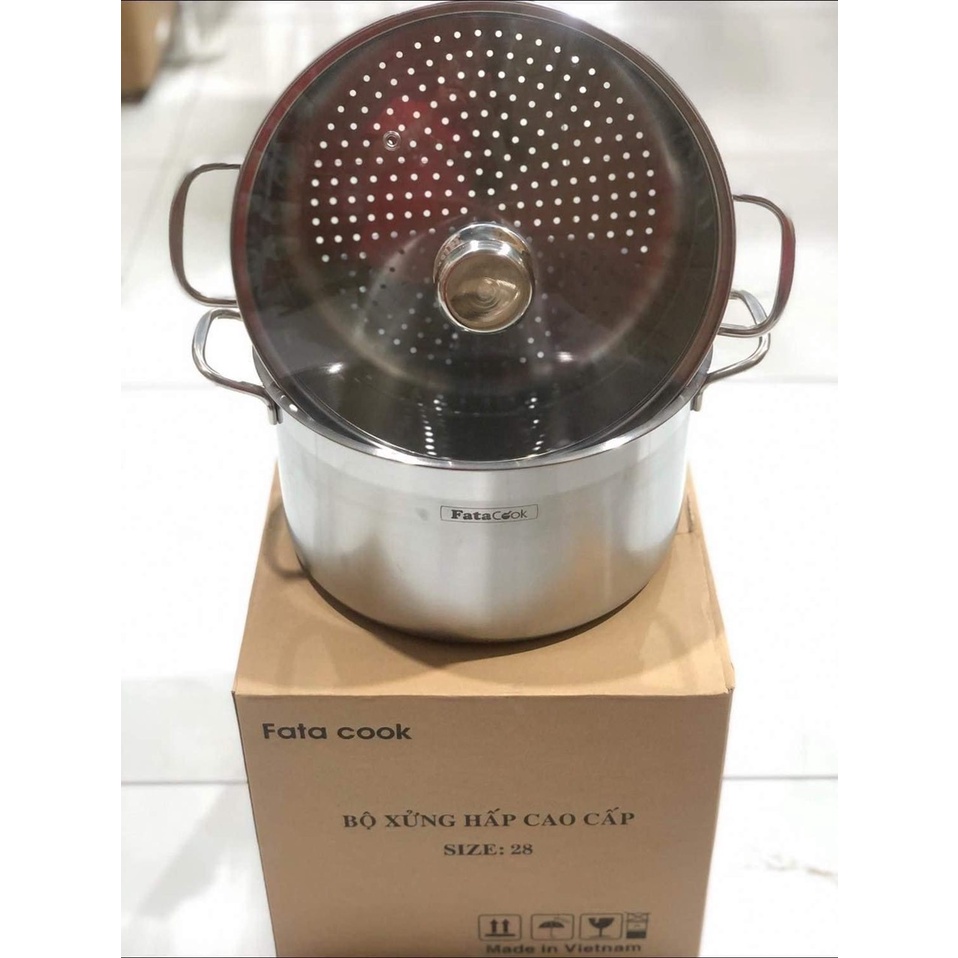 - Bộ nồi hấp Fata vung kính, bao gồm 1 nồi size 28cm và 1 xửng hấp size 28cm, tiện lợi cho nhu cầu nấu ăn của gia đình