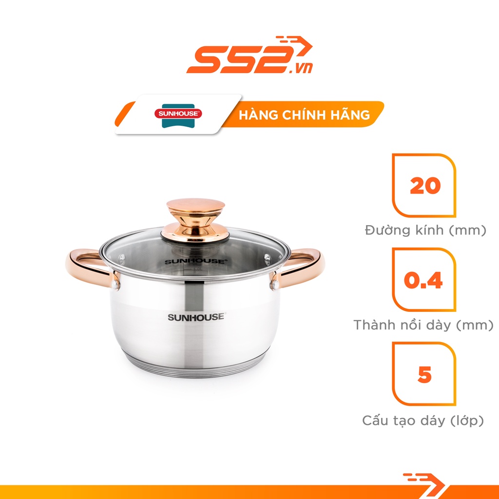 Nồi Inox 5 Đáy Sunhouse 20cm SHG24220 - Hàng Chính HãngTHÔNG SỐ KỸ THUẬT: