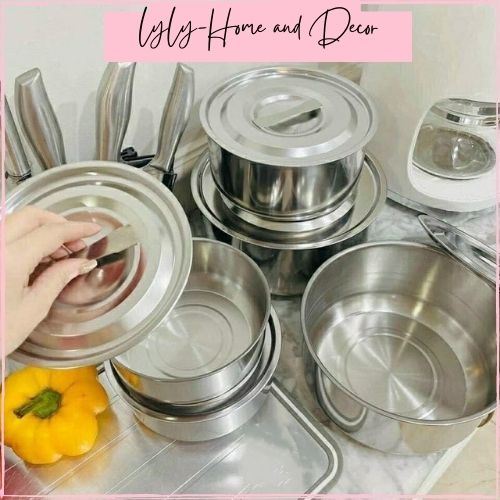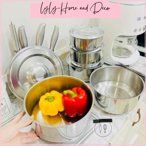 Nhà cửa & Đời sống > Dụng cụ nhà bếp > Nồi || Bộ nồi inox 5 món- Bộ nồi inox snock pot không quai 14/18/22/26/30cm- LylyCòn hàng
