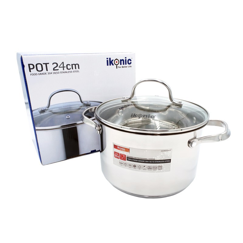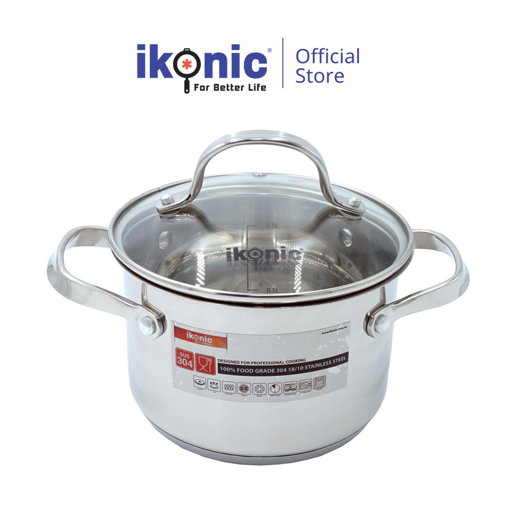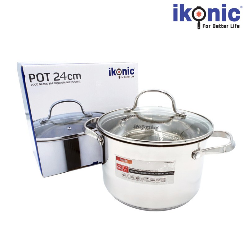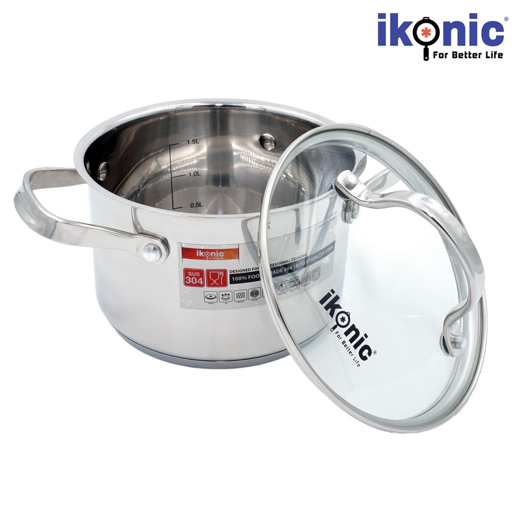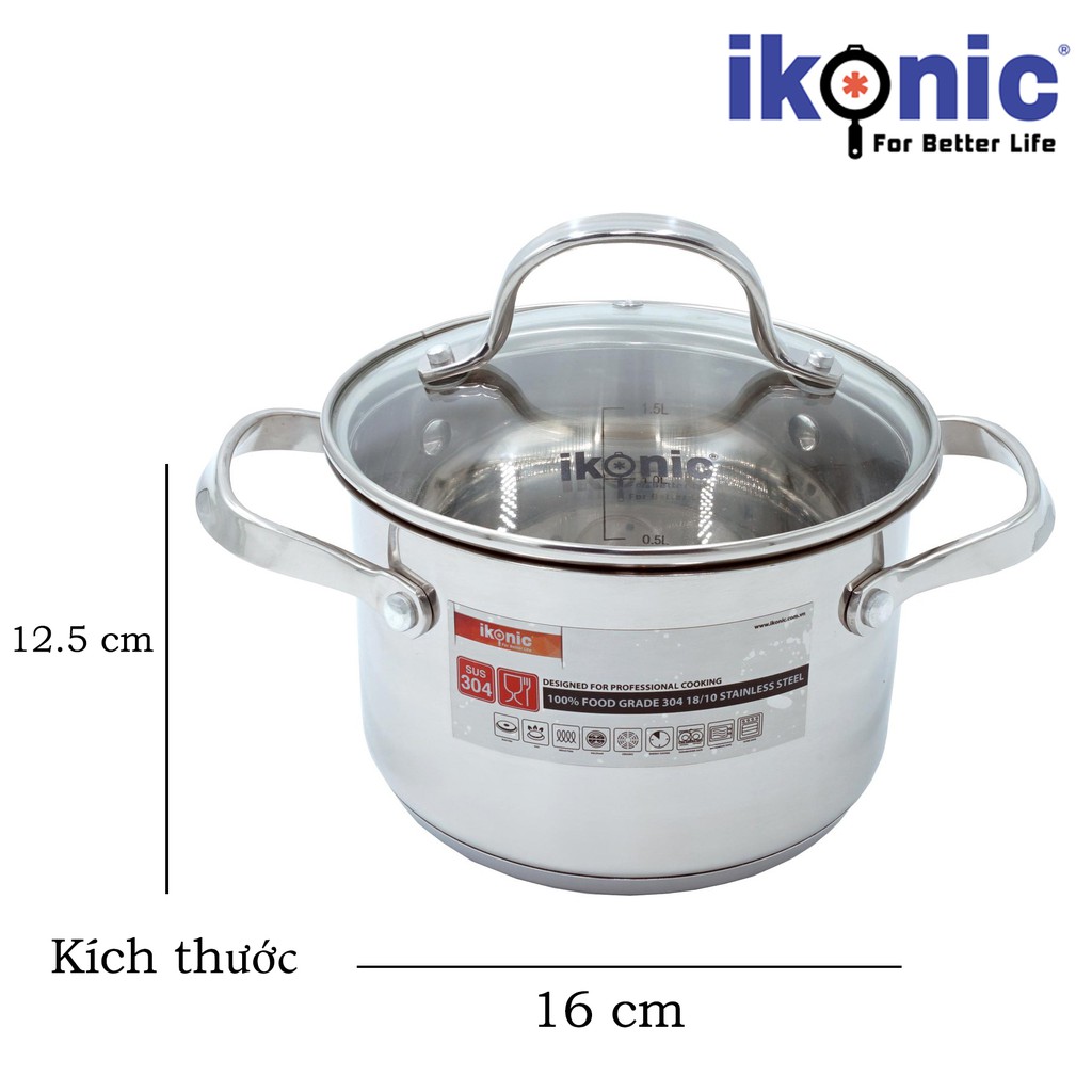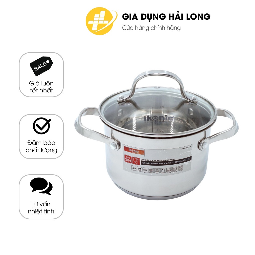 Nhà cửa & Đời sống > Dụng cụ nhà bếp > Nồi || Nồi Inox có nắp kính IKONIC IK55 Siêu bền Inox 304 18/10 chống ăn mòan, đáy nồi 5 lớp dùng cho mọi loại bếp, quai đinhCòn hàng