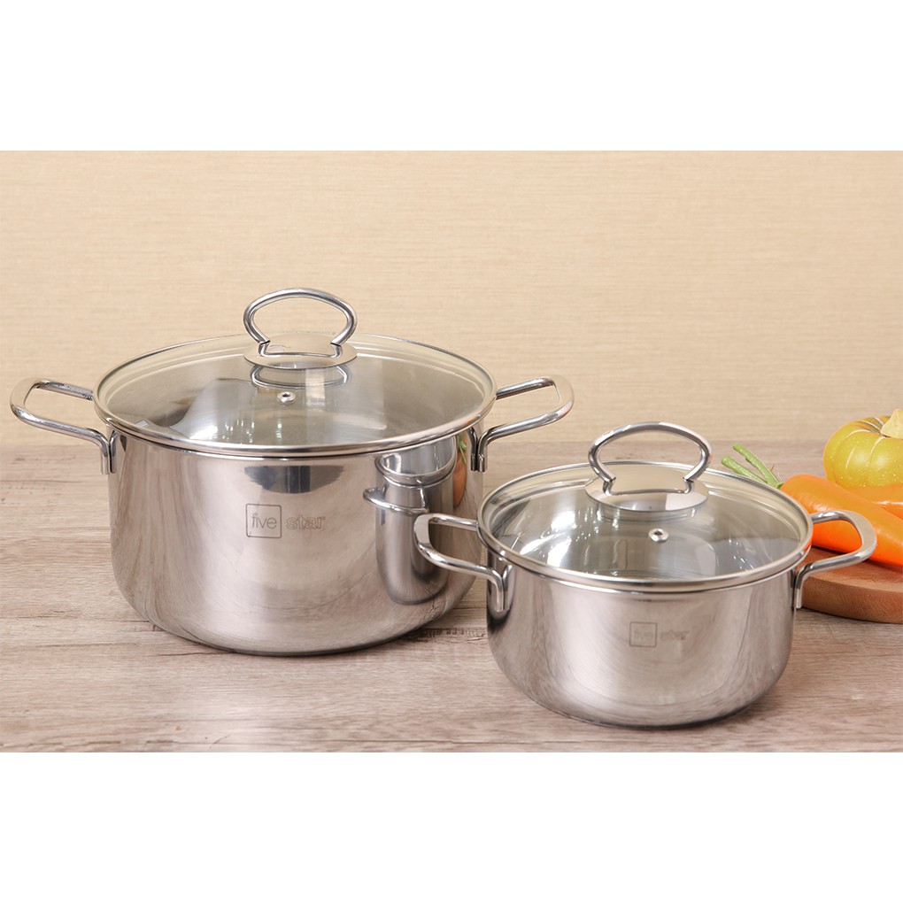 Bộ nồi inox Fivestar 3 đáy từ 18cm và 24cm nắp kính