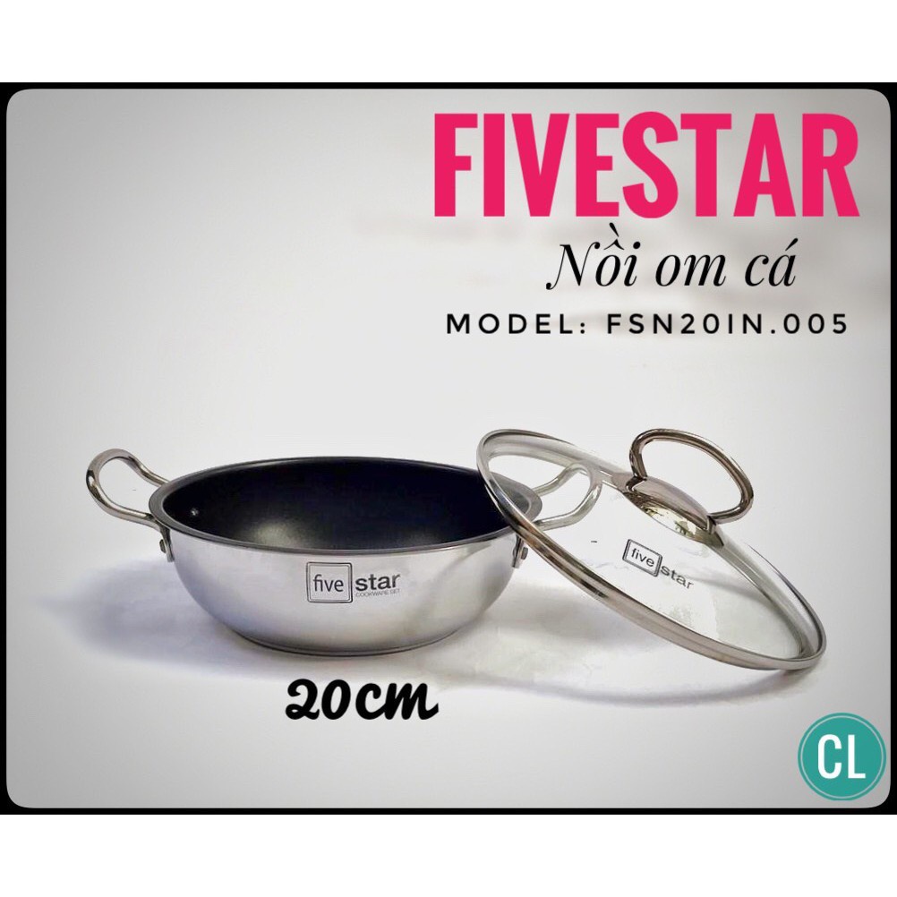 Nồi Inox Fivestar -Lòng Chống Dính -3 Đáy Dùng Được Bếp Từ 18-20-22cm -Nồi Kho Thịt Cá -chiên Gập Dầu- BH 24 tháng