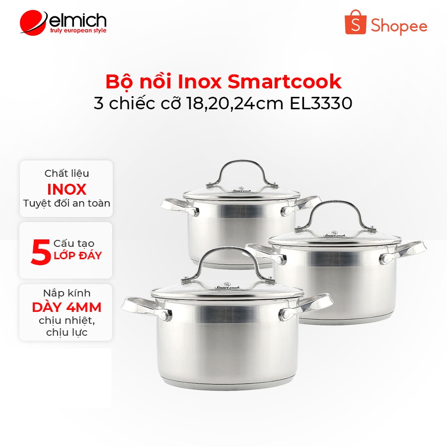 Nhà cửa & Đời sống > Dụng cụ nhà bếp > Nồi || [Mã LIFEMALL2503 giảm 15% đơn 99K] Bộ nồi Inox Smartcook 3 chiếc cỡ 18,20,24cm EL3330Còn hàng