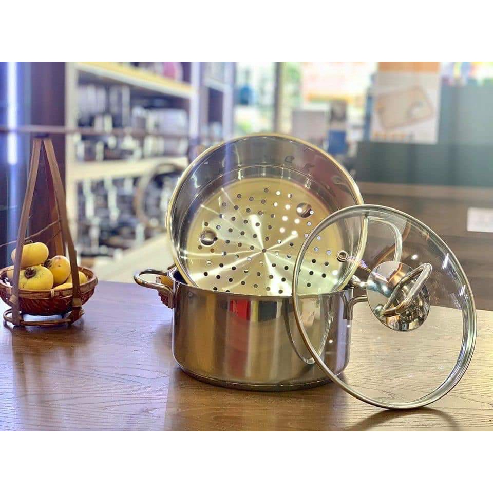 Nhà cửa & Đời sống > Dụng cụ nhà bếp > Nồi || Bộ nồi kèm xửng hấp Ernesto 20cm nắp vung kính [nhập Đức chính hãng]Còn hàng