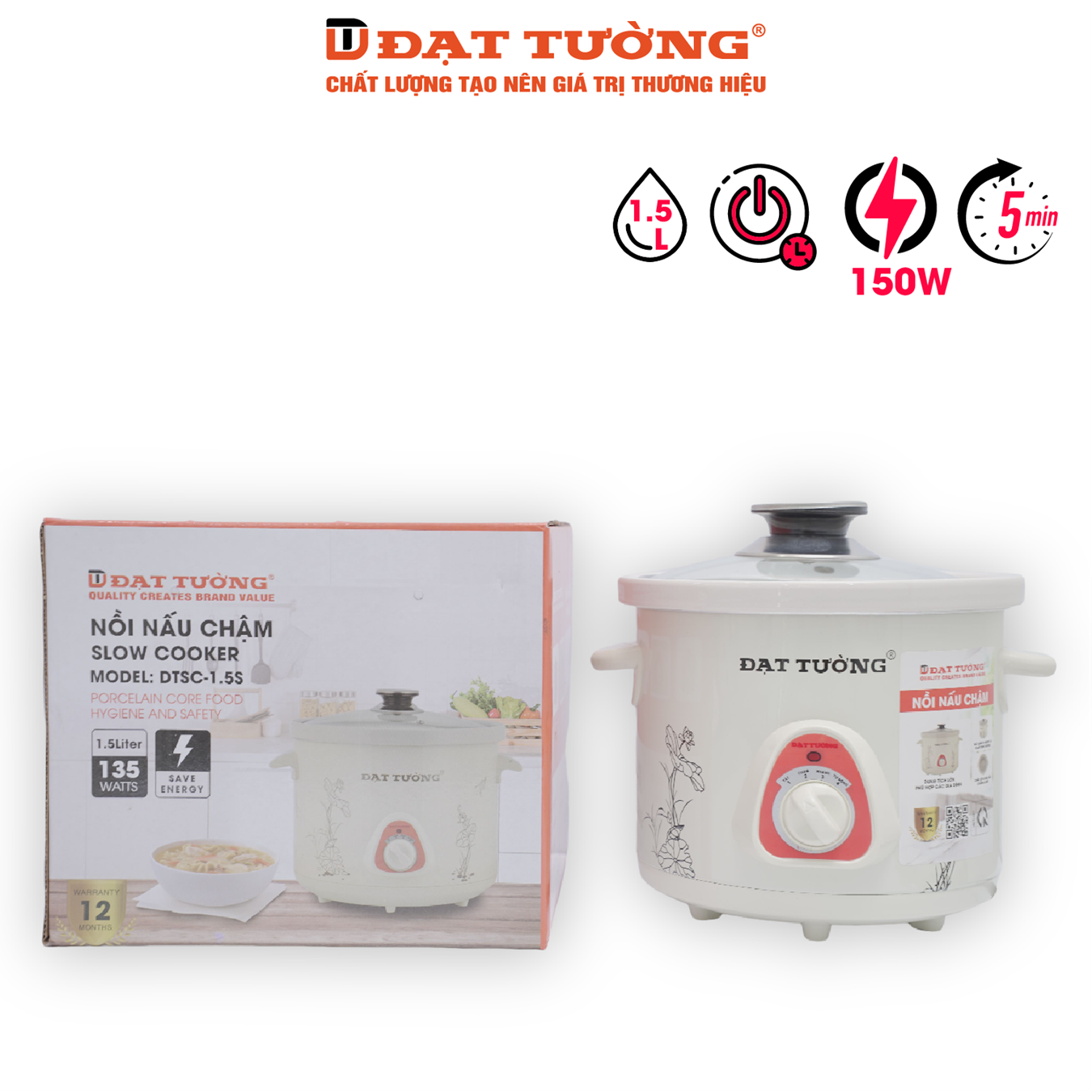 Nồi Kho Đa Năng Sứ Đạt Tường DTSC-1.5S 1,5L - Hàng Chính Hãng