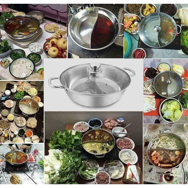 🍵Nồi lẩu hai ngăn bằng inox sử dụng trên mọi loại bếp