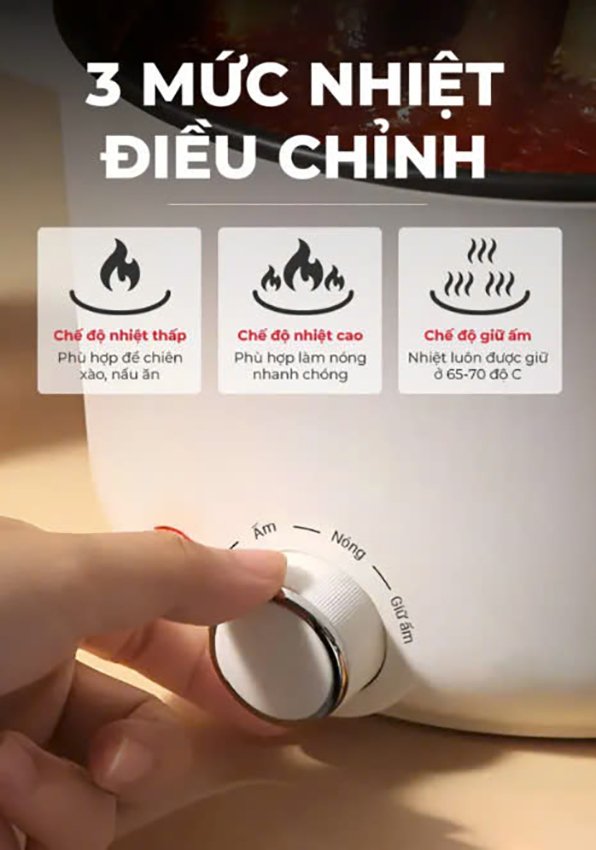 - 3 mức nhiệt điều chỉnh linh hoạt theo nhu cầu sử dụng
