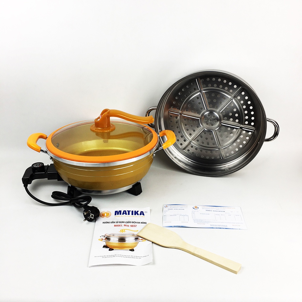 Nổi lẩu điện đa năng MATIKA 6L 1800W MTK-9032Chảo điện đa năng cao cấp Matika MTK-9032 kiểu dáng sang trọng, khoác lên tông màu vàng kim vô cùng nổi bật, dung tích 6L với chức năng nấu đa dạng là sản phẩm tiện ích trong căn bếp của mọi gia đình.