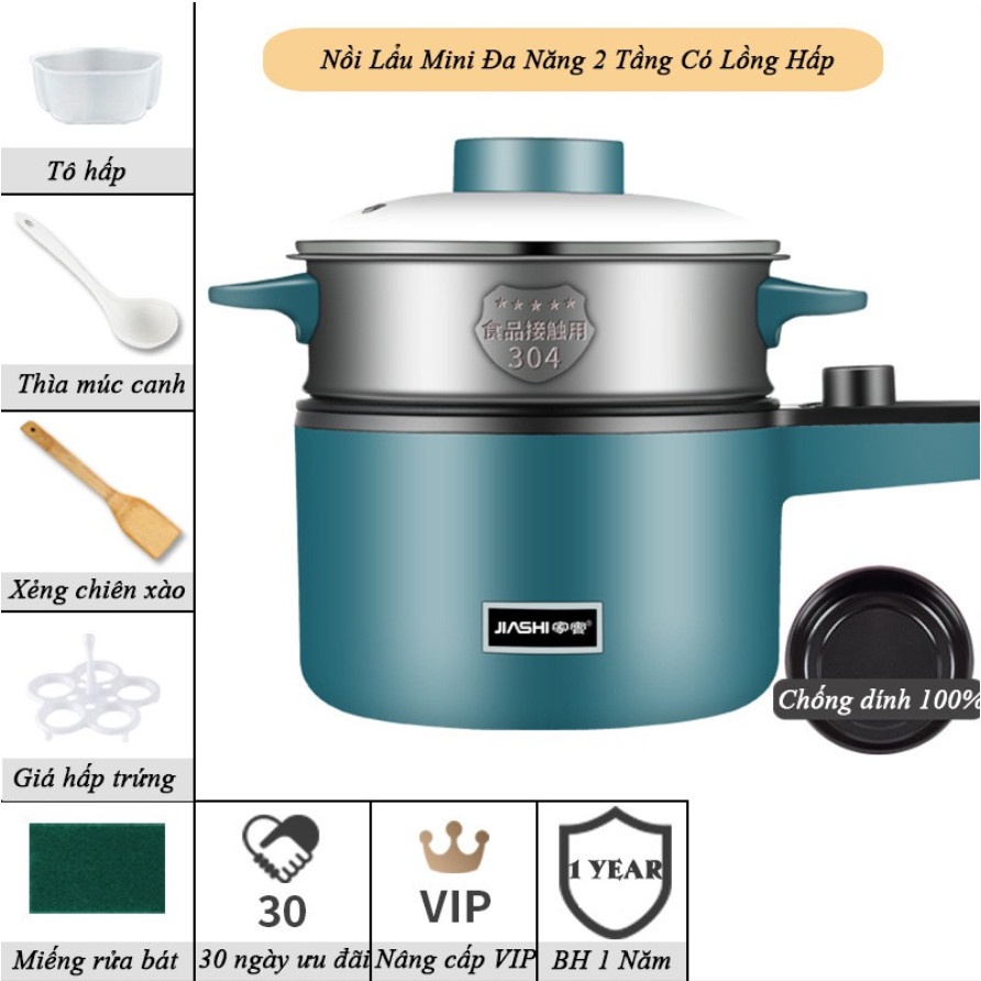 Nồi lẩu điện JIASHI mini đa năng 1,2l 1/2 tầng, công suất 600W dùng chi Chiên, Rán, Nấu,... NLD01