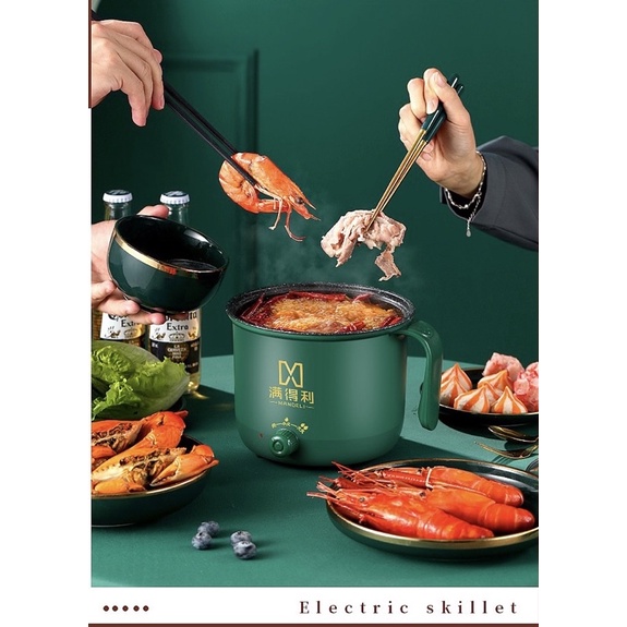 Giới thiệu Nồi lẩu điện mini 18cm, nấu cơm, cháo lõi vân đá chống dính mẫu mới