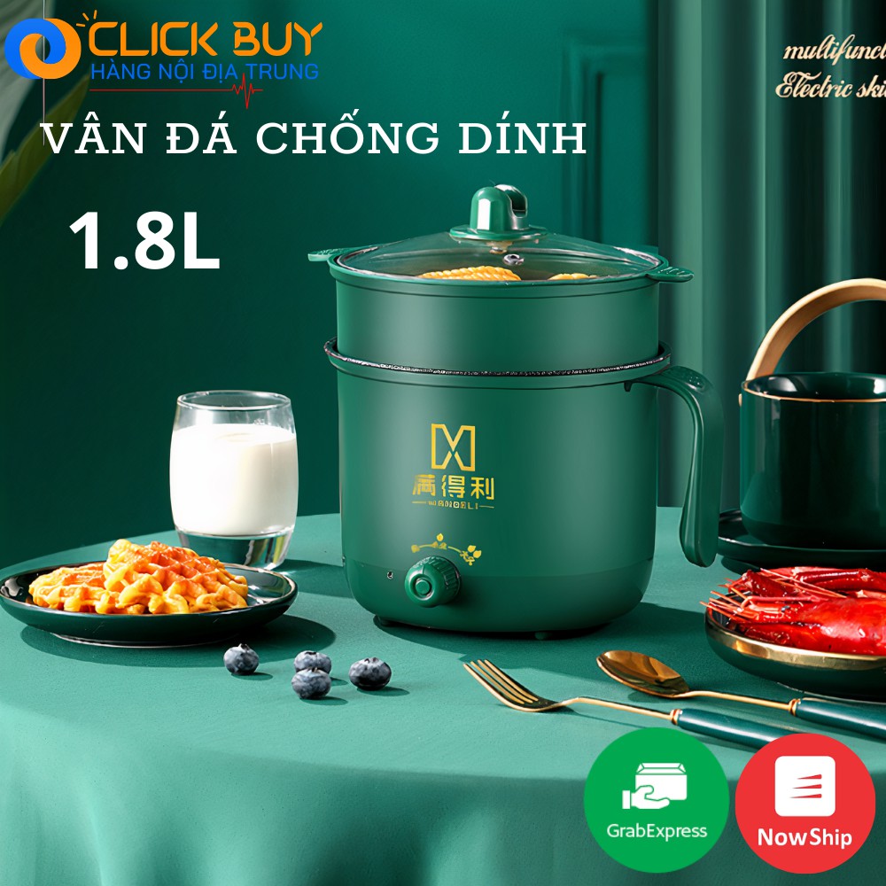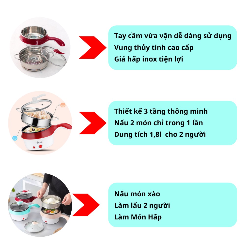Nồi Lẩu Điện Mini 2 CHẾ ĐỘ [BH 12 THÁNG] Ca Nấu Mì Siêu Tốc CHỐNG DÍNH Tặng Kèm Xửng Hấp SIÊU XINH