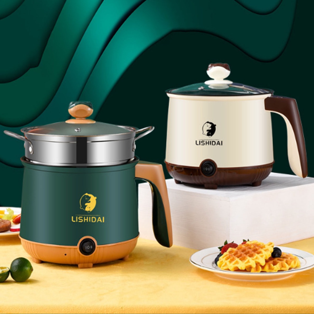 Nồi lẩu điện mini 2 tầng đa năng chống dính kèm khay hấp tiện lợi, Ca nấu mì với 2 nấc nhiệt cho 1, 2 người