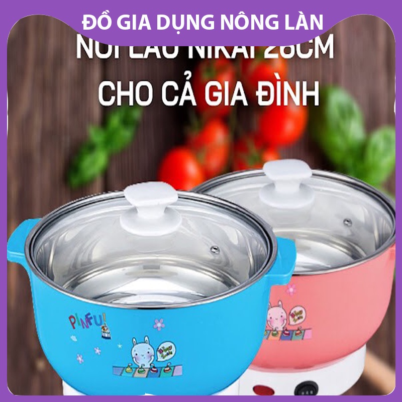 Nồi lẩu điện mini 26cm Nikai vung kính 1000W - Nồi lẩu đa năng gia đình 26cm siêu tốc NL Shop