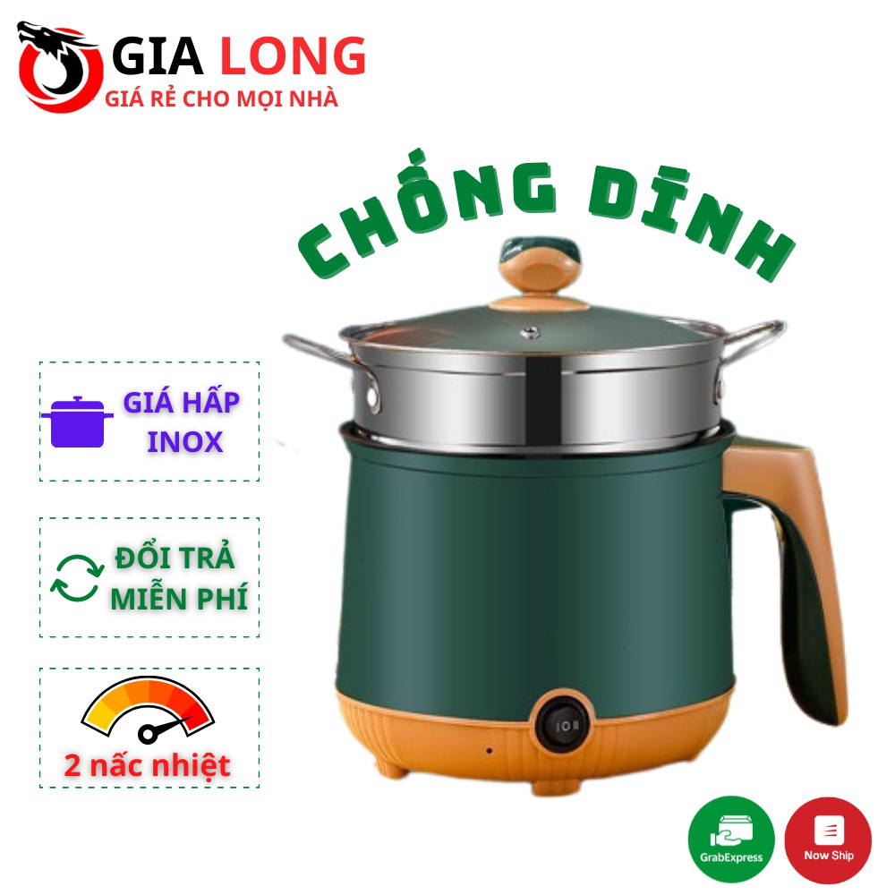 Nồi Lẩu Điện Mini Kèm Giá Hấp, Ca Nấu Mì Nấu Cơm Đa Năng Có Tay Cầm 1,8L - 2 Nấc Nhiệt Mẫu Mới 2022