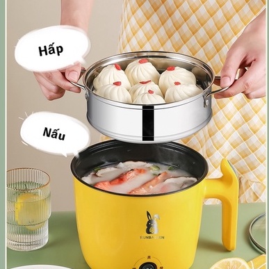 Nồi Lẩu Điện Mini, Nấu Mì 2 Tầng Kèm Giá Hấp Đa Năng Nướng, Luộc, Chiên Chống Dính Tiện Lợi, Ca nấu mì mẫu mới