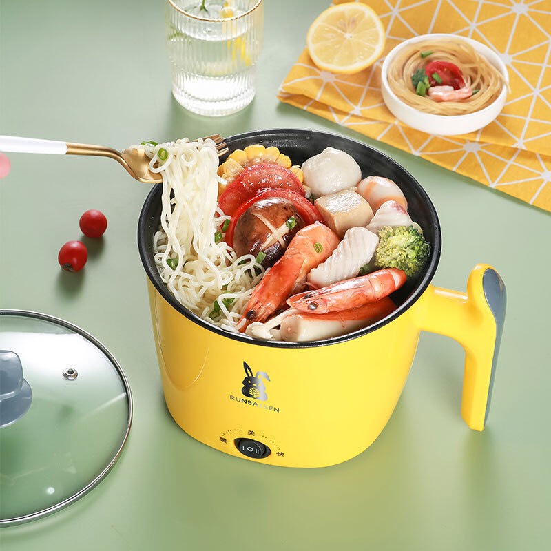 Nồi Lẩu Điện Mini, Nấu Mì 2 Tầng Kèm Giá Hấp Đa Năng Nướng, Luộc, Chiên Chống Dính Vấn Đá Tiện Lợi, Ca nấu mì mẫu mới