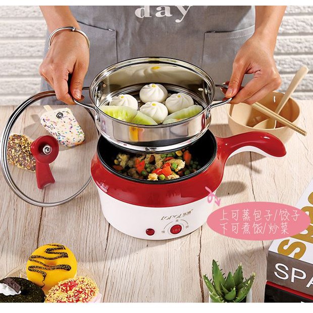 Giới thiệu Nồi Lẩu Điện Mini -Núm Xoay 2 NẤC NHIỆT Kèm Giá Hấp 1,8L, Ca Nấu Mì,Nấu Cơm Đa Năng 2 Tầng Cao Cấp