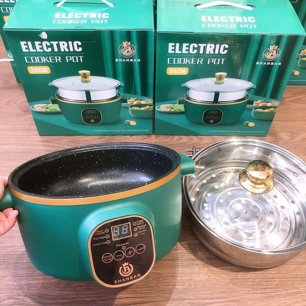 Nồi Lẩu Điện Mini Shaban 24cm Chống Dính Vân Đá, Tặng Kèm Giá Hấp Inox - Chịu Nhiệt Tốt, Độ Bền cao